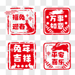 一组红色兔年印章组合素材