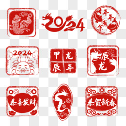 一组矢量龙年新春印章合集元素