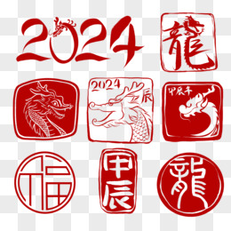 一组手绘龙年印章免抠素材