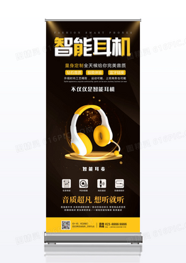 黑色科技智能耳机音质超凡宣传展架易拉宝