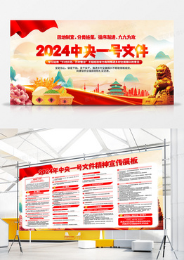 红色时尚国潮2024中央一号文件千村示范万村整治展板宣传