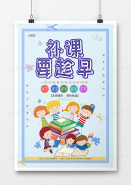 浅蓝色一群孩子一起看书开心简约清新风商业教育海报
