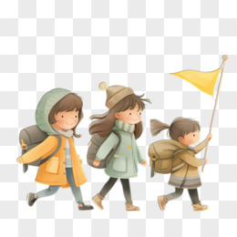 手绘小伙伴一起出门冲浪旅行度假免抠元素