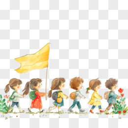手绘男孩女孩一起搭帐篷野餐免抠元素
