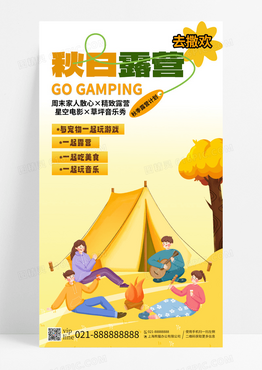 黄色秋日露营去撒欢一起玩一起吃美食手机海报
