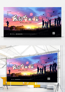 简约浪漫我们毕业啦剪影毕业季宣传展板