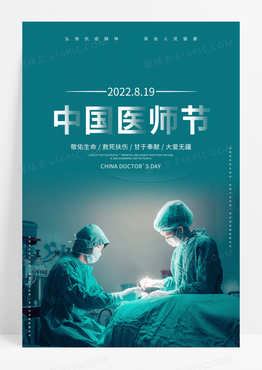 绿色简约医生治病场景8月19日医师节宣传海报中国医师节