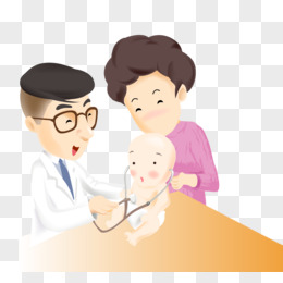 手绘卡通爸爸妈妈照顾生病的孩子素材
