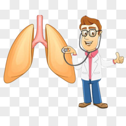 卡通肺炎日两个医生和感染蓝色病毒的肺免抠元素