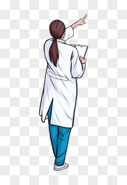 卡通手绘免抠女医生手指背影元素