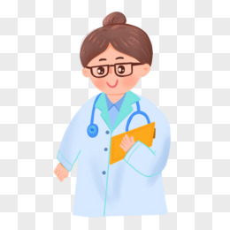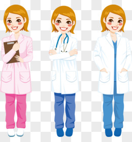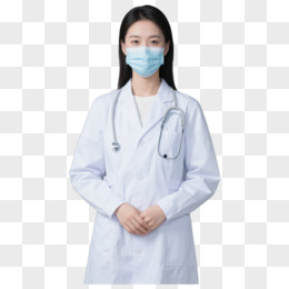 3D卡通穿着白大褂挂着听诊器的女医生戴着口罩坐在高凳上旁边给站着一个男医生免抠元素