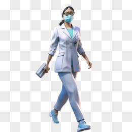 3D卡通穿着连体防护服戴着口罩的女医生和男医生免抠元素