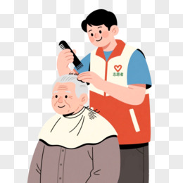志愿者给老年人理发公益免抠元素
