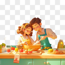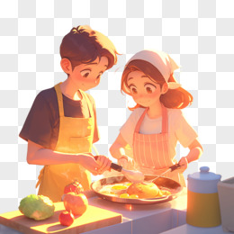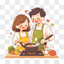 情侣一起下厨做饭插画烹饪料理免抠元素