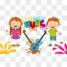 卡通手绘女孩与男孩组成乐队唱歌免抠元素