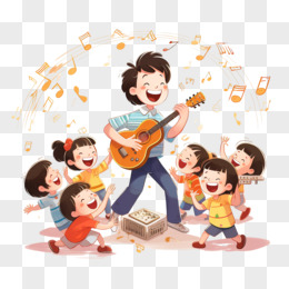 手绘卡通音乐社团表演素材