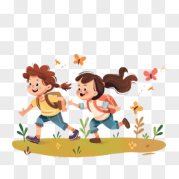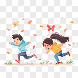 儿童抓蝴蝶插画免抠