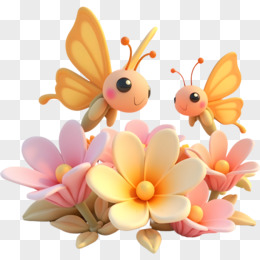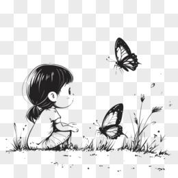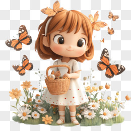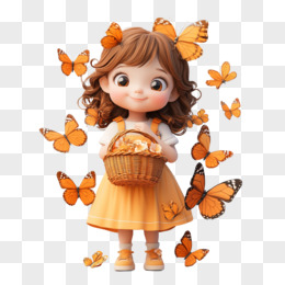 3D风格小女孩周围围满了蝴蝶的免抠元素