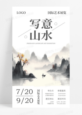水墨写意山水艺术展览宣传ui手机海报艺术展邀请函
