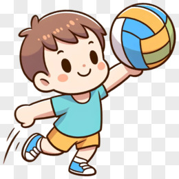 可爱卡通小朋友打排球体育运动免抠元素