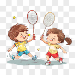 小朋友一起打羽毛球免抠元素