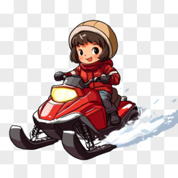 插画风格女孩骑雪地车的元素