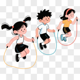 手绘卡通三个小朋友在跳绳比赛免抠元素