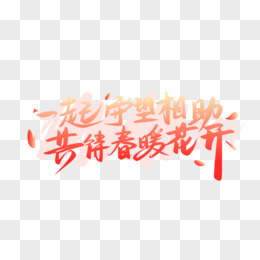 渐变唯美一起守望相助共待春暖花开免抠矢量艺术字