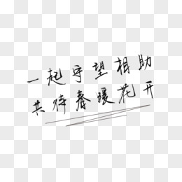 黑色手写一起守望相助共待春暖花开艺术字设计免抠素材
