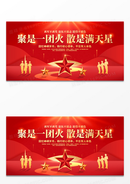 聚是一团火散是满天星红色大气退伍欢送会宣传展板