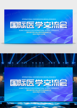 简约蓝色创意卡通大气医学交流会宣传舞台背景