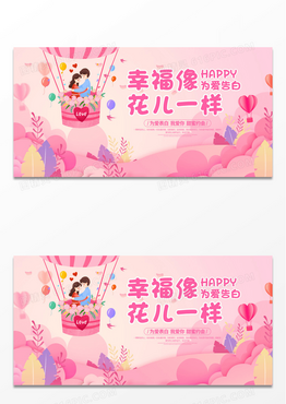 粉色时尚插画幸福的像花一样520情人节展板设计
