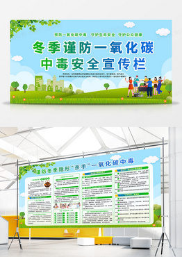 绿色清新冬季防范一氧化碳中毒安全教育宣传栏冬季健康