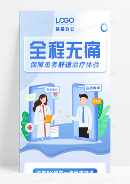 蓝色医疗简约商务风医疗宣传全程无痛长图医疗医院