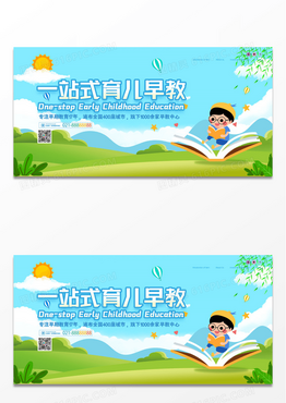 简约卡通大气一站式育儿早教教育展板