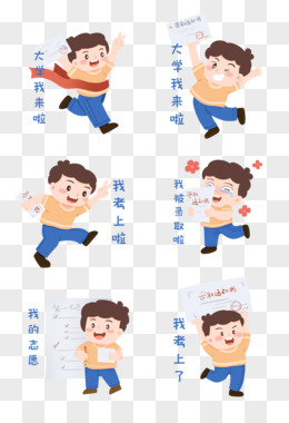 一组卡通手绘q版被大学录取表情包之我考上啦元素