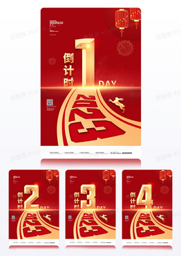 红金大气兔年2023年跨年倒计时4天组图海报