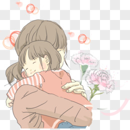 手绘卡通感恩节拥抱母亲素材