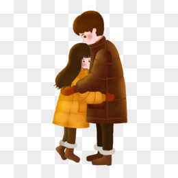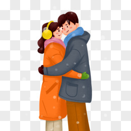 手绘卡通冬日情侣拥抱素材