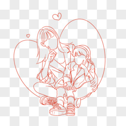手绘线稿线条女儿拥抱爸爸免抠素材