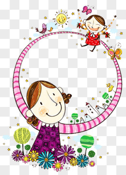 卡通两个穿学士服的小女孩拥抱免抠元素