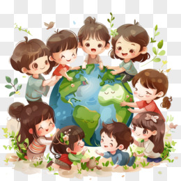 卡通风教师节学生给年迈的老师送花场景免抠元素