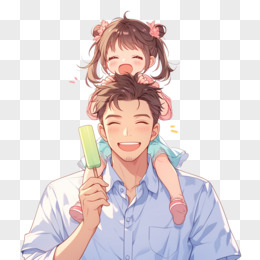 插画风父亲节女孩骑在父亲头上拿着冰棒免抠元素