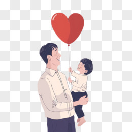 插画风父亲节父亲抱着孩子拿着心形气球免抠元素