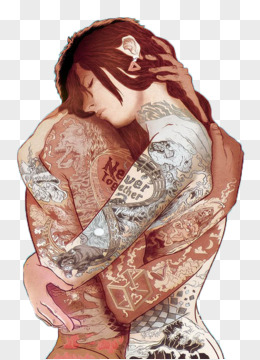 手绘扁平情侣恩爱拥抱场景免抠元素