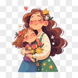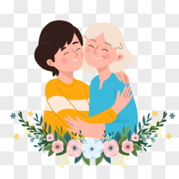 手绘母亲节妈妈拥抱女儿温馨画面合成元素