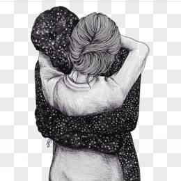 创意手绘拥抱情侣爱恋人物线稿免抠元素