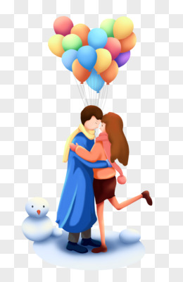 手绘卡通情侣浪漫拥抱插画免抠元素