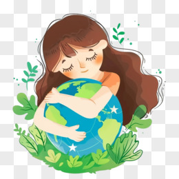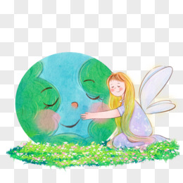 手绘水彩风治愈系长发精灵拥抱地球元素