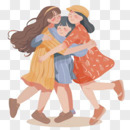 卡通手绘女儿和妈妈互相招手拥抱免抠元素